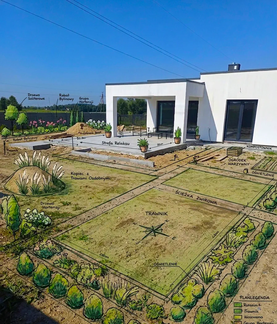 Kompleksowe realizacje: od projektów 3D, przez ciężkie prace ziemne, aż po inteligentne nawadnianie i strefy relaksu.